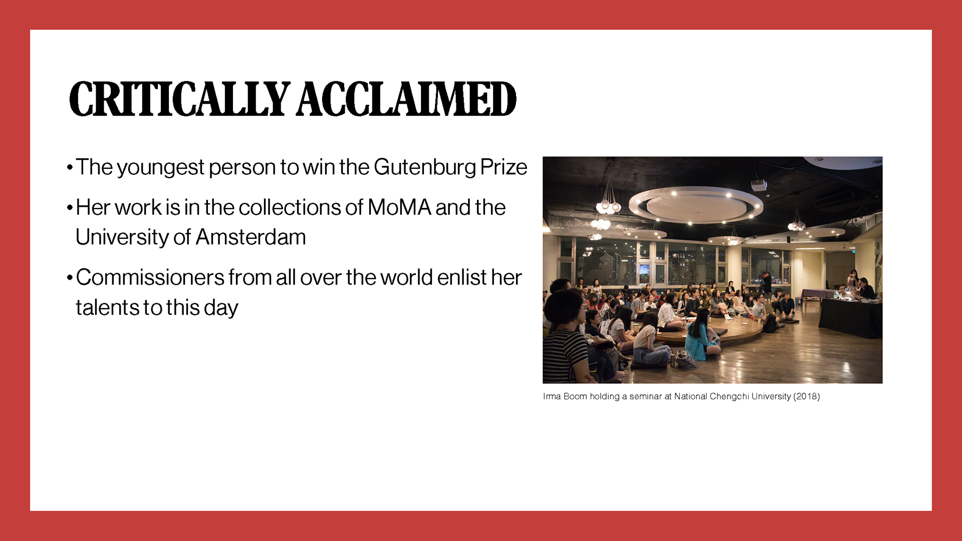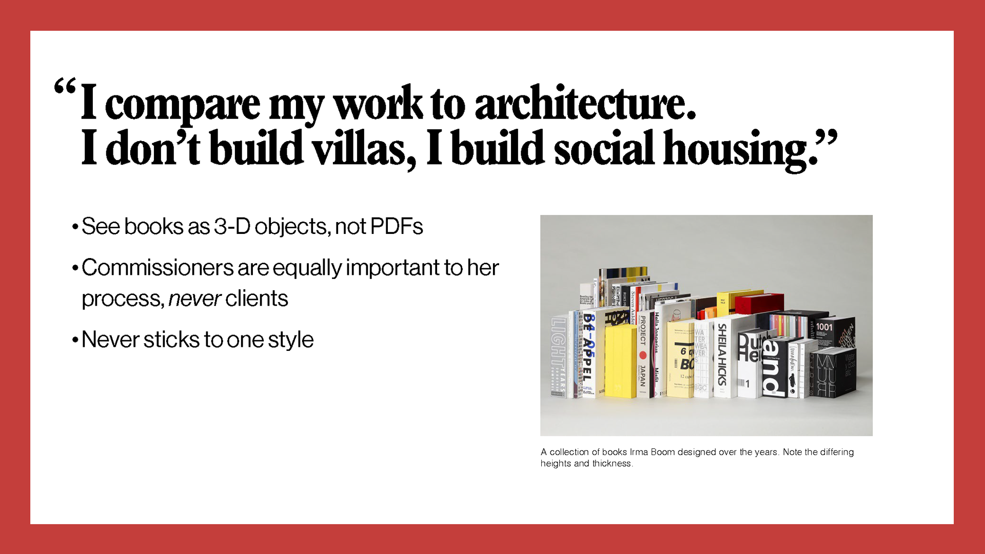 Doing the research for this one made Irma Boom one of my favorite designers working today. I wanted to honor her work by taking inspiration from the iconic little red book version of her autobiography and how she handled the type in Weaving as Metaphor.