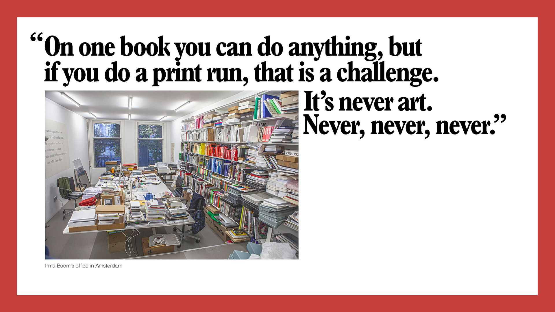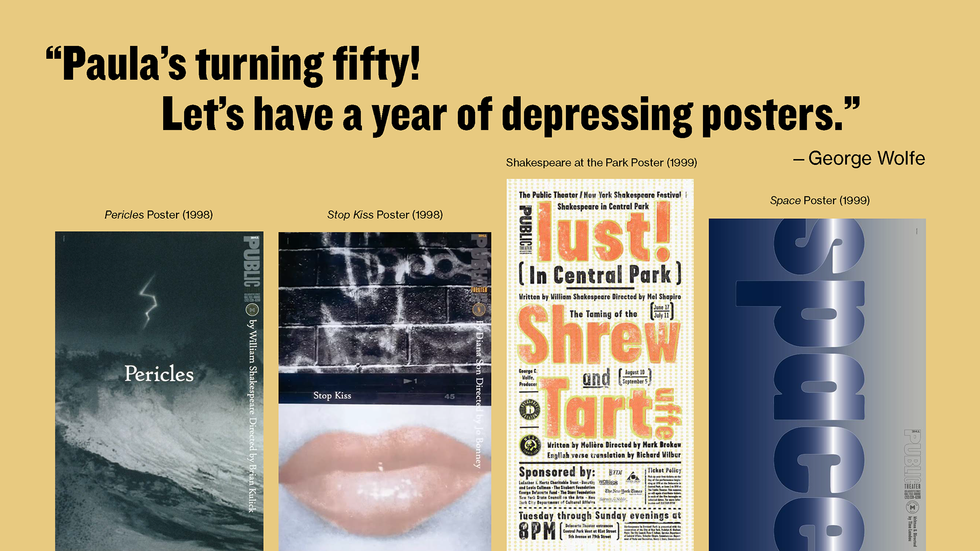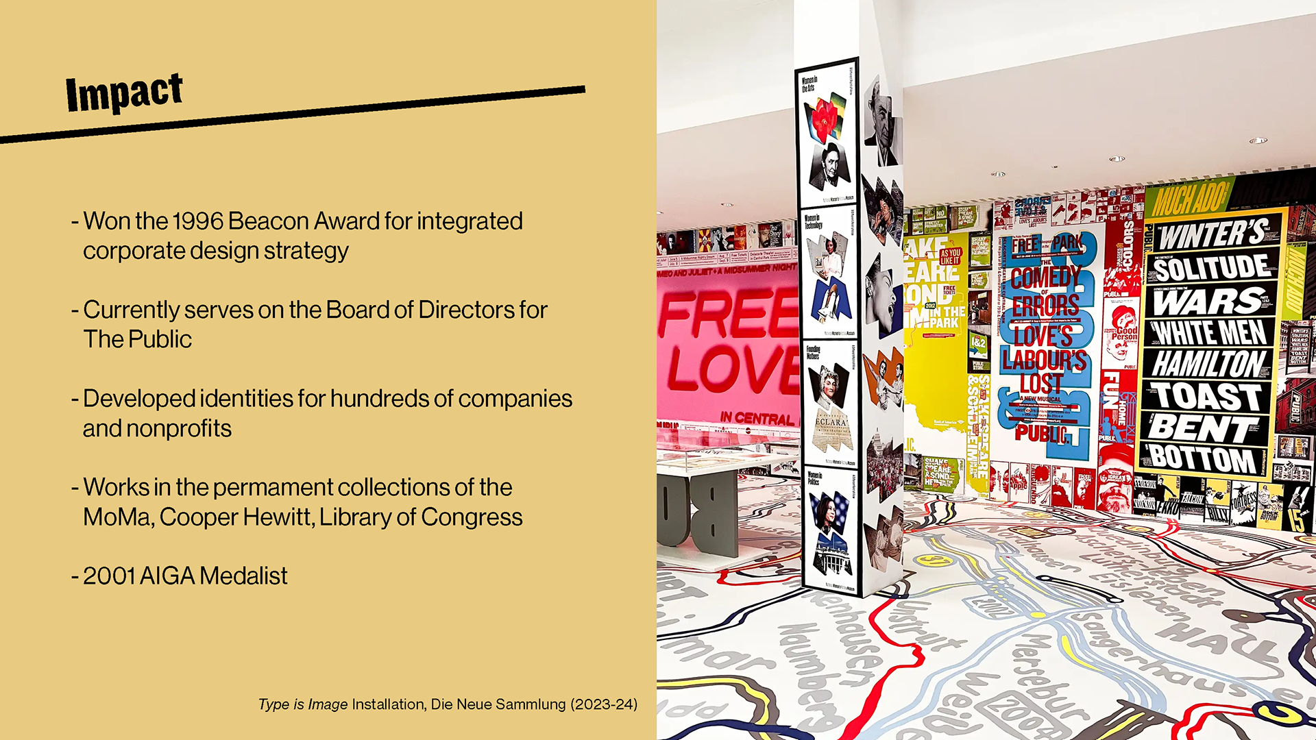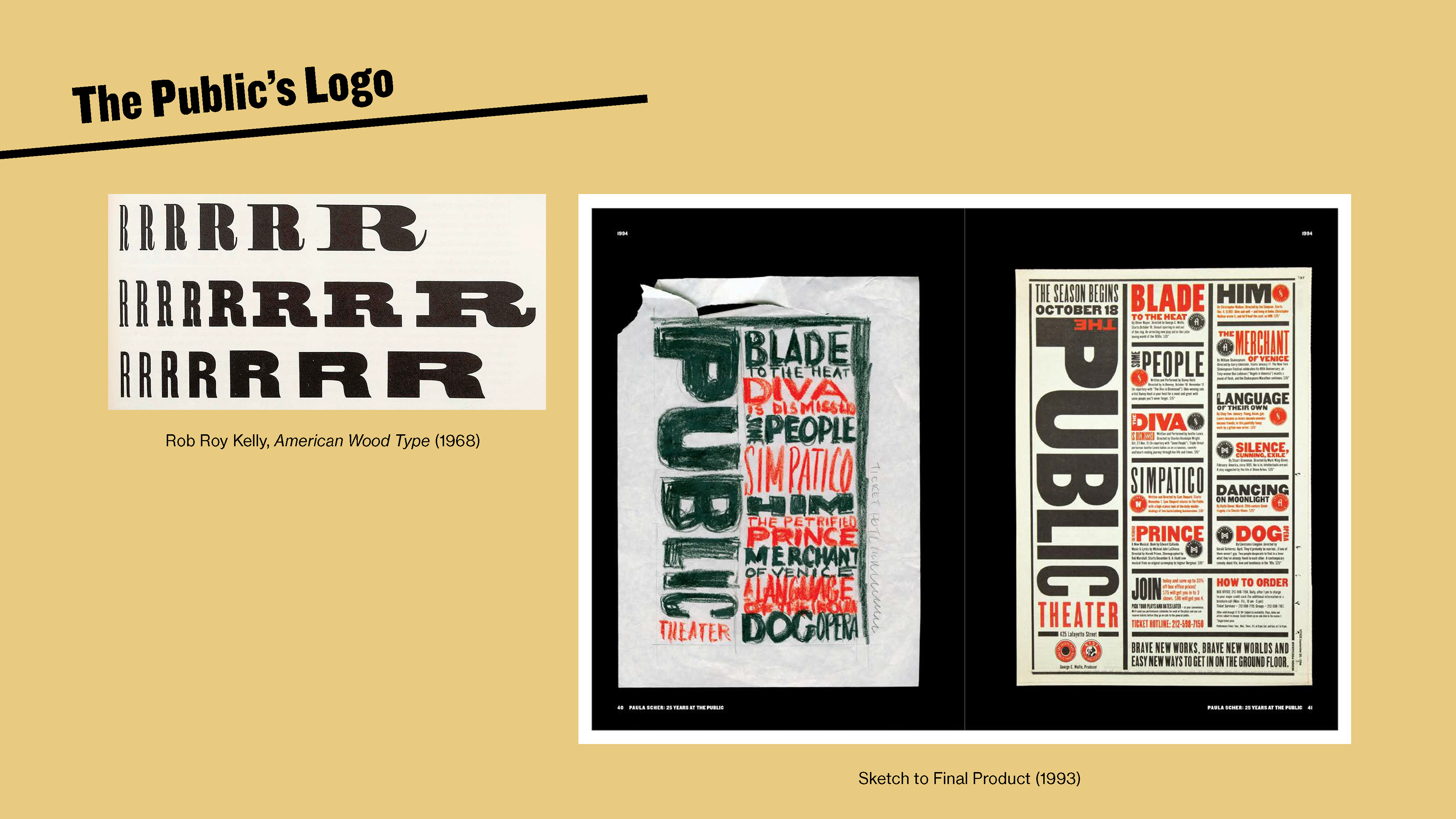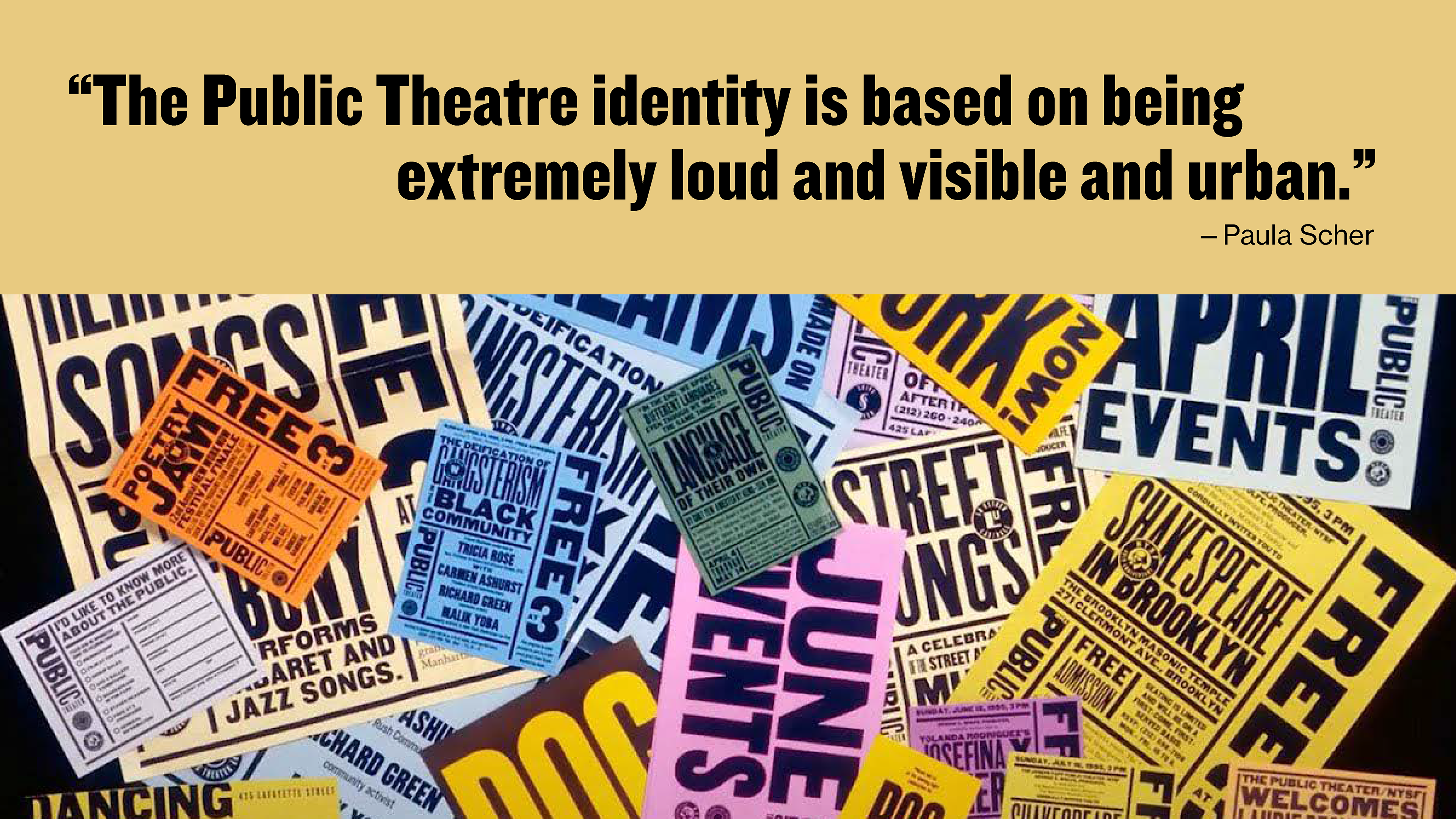 By this point, I became more comfortable letting the designer's work speak for itself while I provided the context behind the creative and business decisions that resulted in the form one of Paula Scher's most iconic projects took. Slanted titles and bold type were only fitting for her dynamic sensibilities.