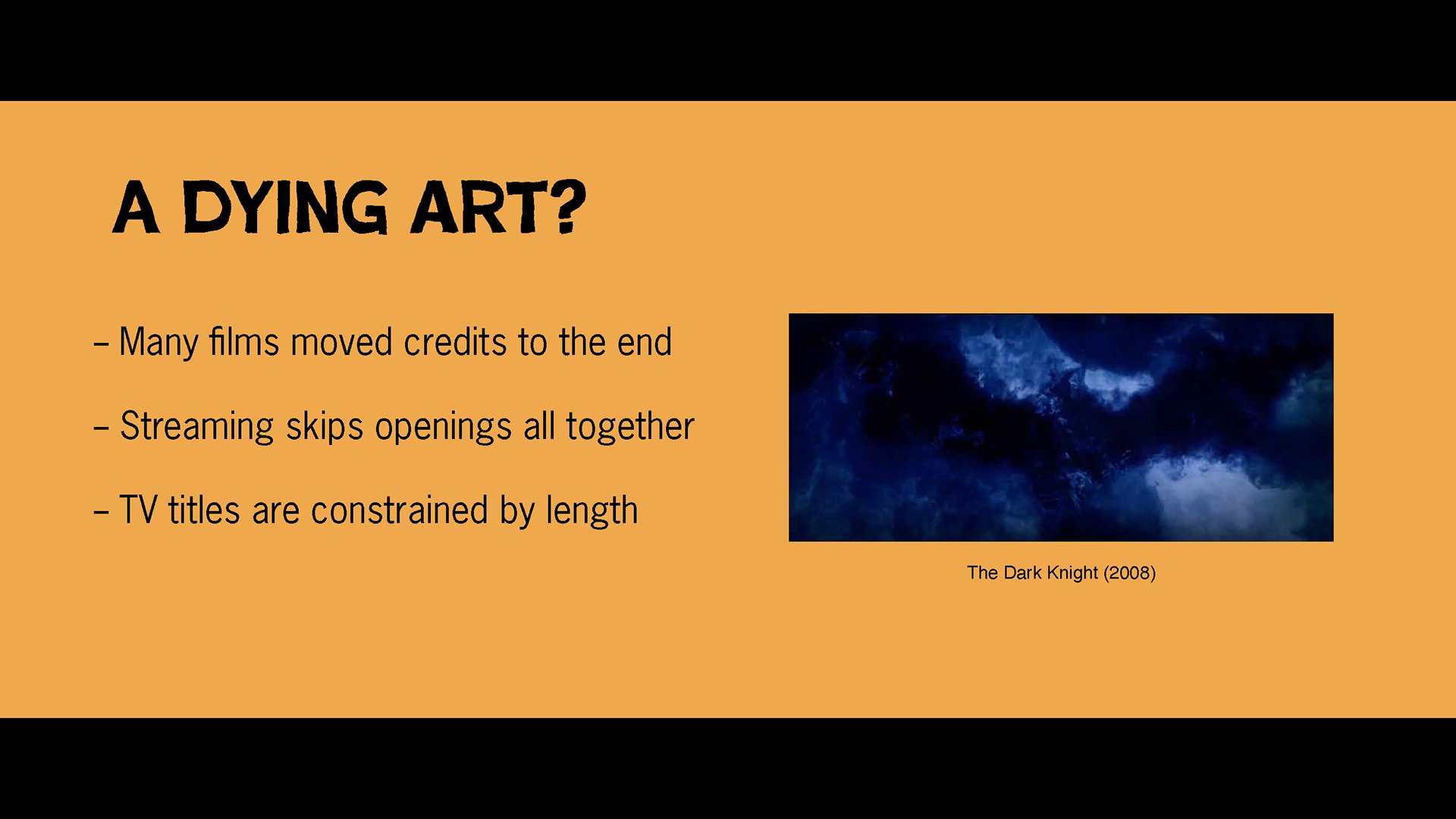 My first was about the history of opening film titles. The theming was inspired by film cameras and Saul Bass.